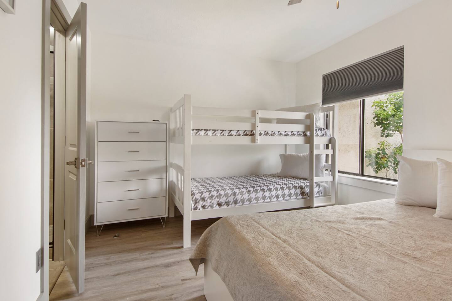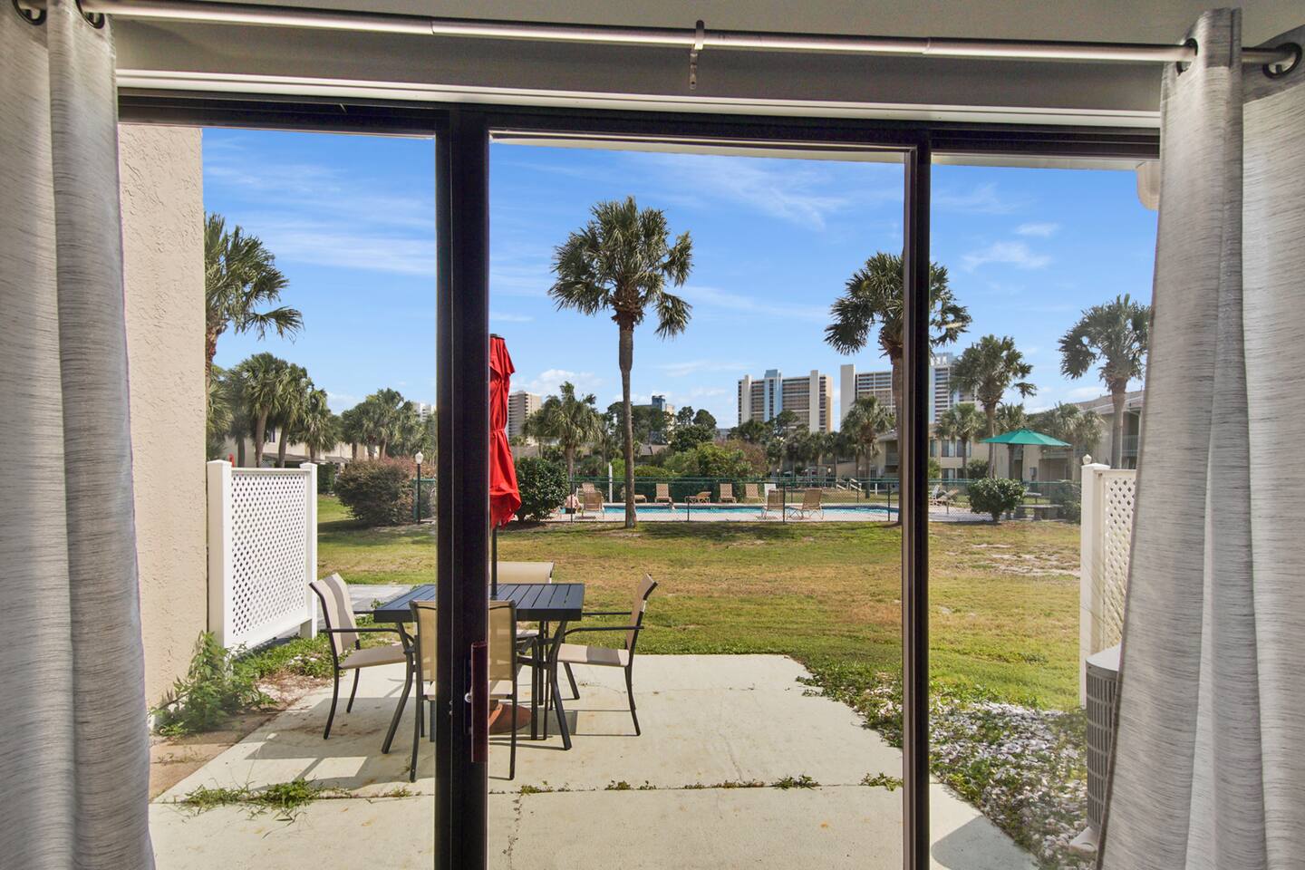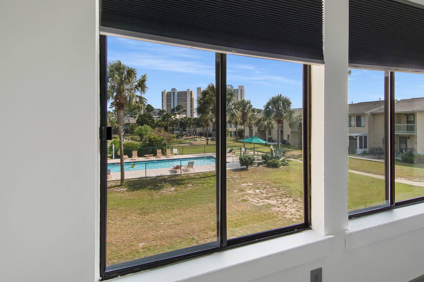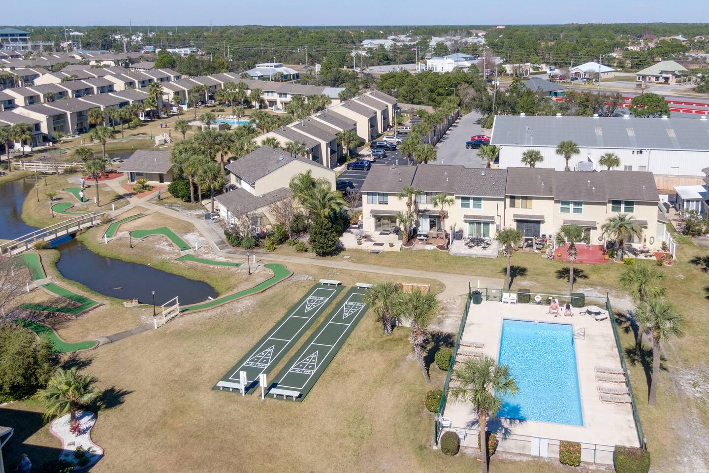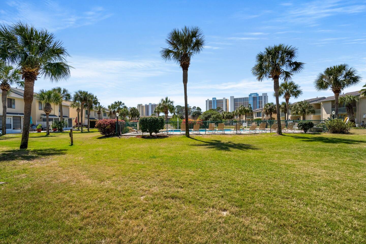 Learn more below! ✔ 2 Comfortable Bedrooms (4 Beds) ✔ Open Design Living ✔ Fully Equipped Kitchen ✔ Front & Back Patios ✔ Smart TVs ✔ High-Speed Wi-Fi ✔ Resort Amenities (Pools, Sports, Gym, Parking...) ✔ Free Putt Putt ✔ Pickle Ball Court This lovely two-story Panama City Beach gem is designed with ultimate relaxation and resort-like comforts in mind. Invite everyone to the open-concept living area boasting a modern look and have hours of fun by watching movies, playing games, or cooking in the kitchen. Serve those tasty homemade delicacies on the dining table, creating a pleasant setting you’ll enjoy in the great company of your family and friends. Open the patio doors to reveal the outdoor area overlooking the heated (in the winter) pool, revel in complete tranquility, and feel the pulse of the wonderful resort. Have a refreshing drink and catch a breath of fresh air before heading to the beach or the nearby swimming pools. Once the sun goes down in Florida, retreat to the upper floor, which features two inviting bedrooms with comfortable beds to help you recharge after a long day of Panama City adventures. ★ LIVING AREA ★ The bright living room is the heartbeat of the open-concept design area, offering a unique and upbeat setting to relax between exciting sightseeing and beach hopping. ✔ Oversized Sectional ✔ Smart TV ✔ Stylish Coffee Table ✔ Reading Lamp ✔ Access to the Patio ★ KITCHEN & DINING ★ Open the cabinetry to find everything you need to treat your family to their favorite meals. Sort those fresh ingredients on the countertops and use the modern cooking appliances to unleash your cooking creativity! ✔ Microwave ✔ Stove ✔ Oven ✔ Toaster ✔ Blender ✔ Coffee Maker (Keurig Machine, Drip Coffee Maker) ✔ Refrigerator/Freezer ✔ Dishwasher ✔ Sink - Hot & Cold Water ✔ Trays ✔ Glasses ✔ Silverware ✔ Pots & Pans The dining table is ideally nestled by the kitchen, allowing you to set the table and enjoy tasty family meals easily. The kitchen features a lovely bar where you can serve breakfasts, snacks, and smaller meals. ✔ Dining Table with Seating for 6 ✔ Kitchen Bar with Seating for 4 ★ SLEEPING ARRANGEMENTS - 2 BEDROOMS ★ Explore Panama City Beach, visit the attractions, soak up the sun on the beach, and then retreat to two comfortable bedrooms to rest so you can do it all again tomorrow. ♛ Bedroom 1: King-Size Bed ♛ Bedroom 2: Queen-Size Bed and twin over twin bunk bed Both bedrooms come with a similar set of amenities: ✔ Premium Pillows, Linens, and Sheets ✔ Smart TVs ✔ Closets with Hangers and Shelves ✔ Dressers with Spacious Drawers ✔ Nightstands with Reading Lamps ★ BATHROOMS ★ To ensure a perfect, carefree stay, we have prepared essential toiletries and fresh towels in the inviting full bathrooms on the upper floor and the convenient half bath accessible from the living area. ✔ Walk-In Shower ✔ Vanity ✔ Mirror ✔ Toilet ✔ Towels ✔ Hair Dryer ✔ Essential Toiletries ★ OUTDOORS ★ Marvel at the serene surroundings from the two patios offering many relaxing spaces and amenities. Look no further than our charming resort home for an unforgettable visit to Panama City Beach, FL. We are happy to answer any questions you might have.