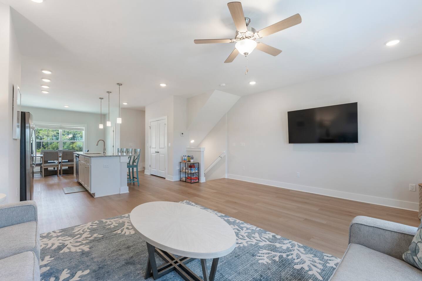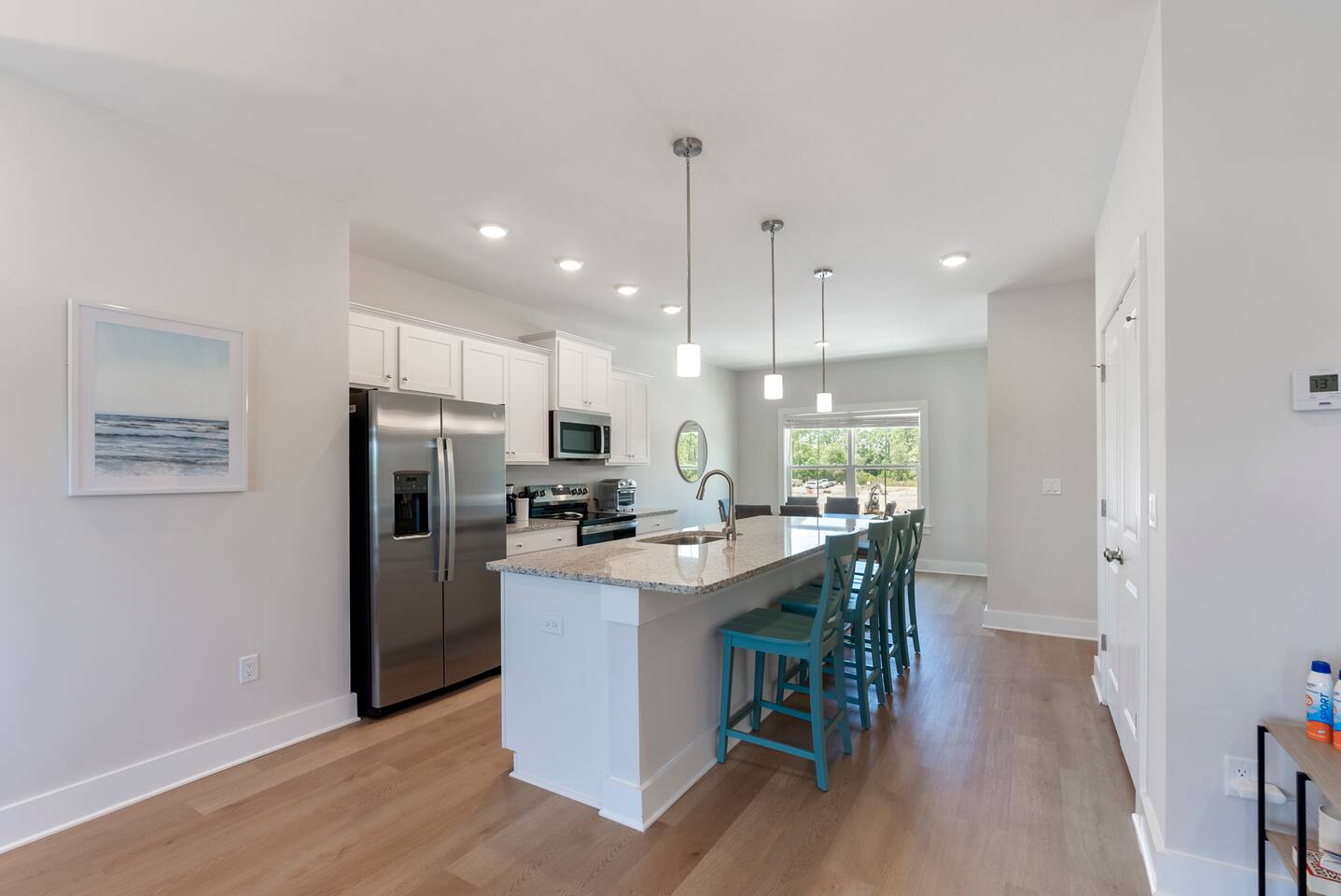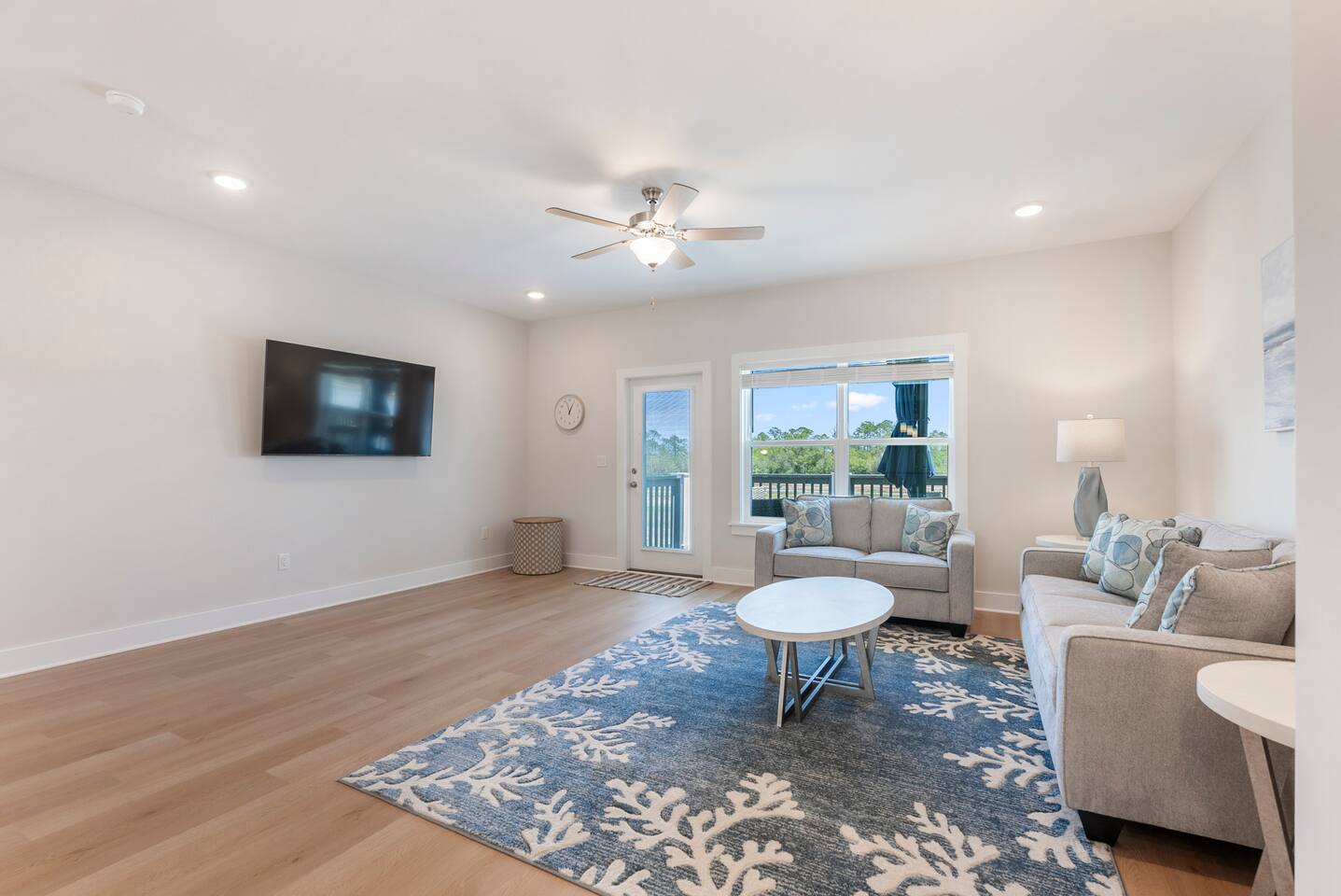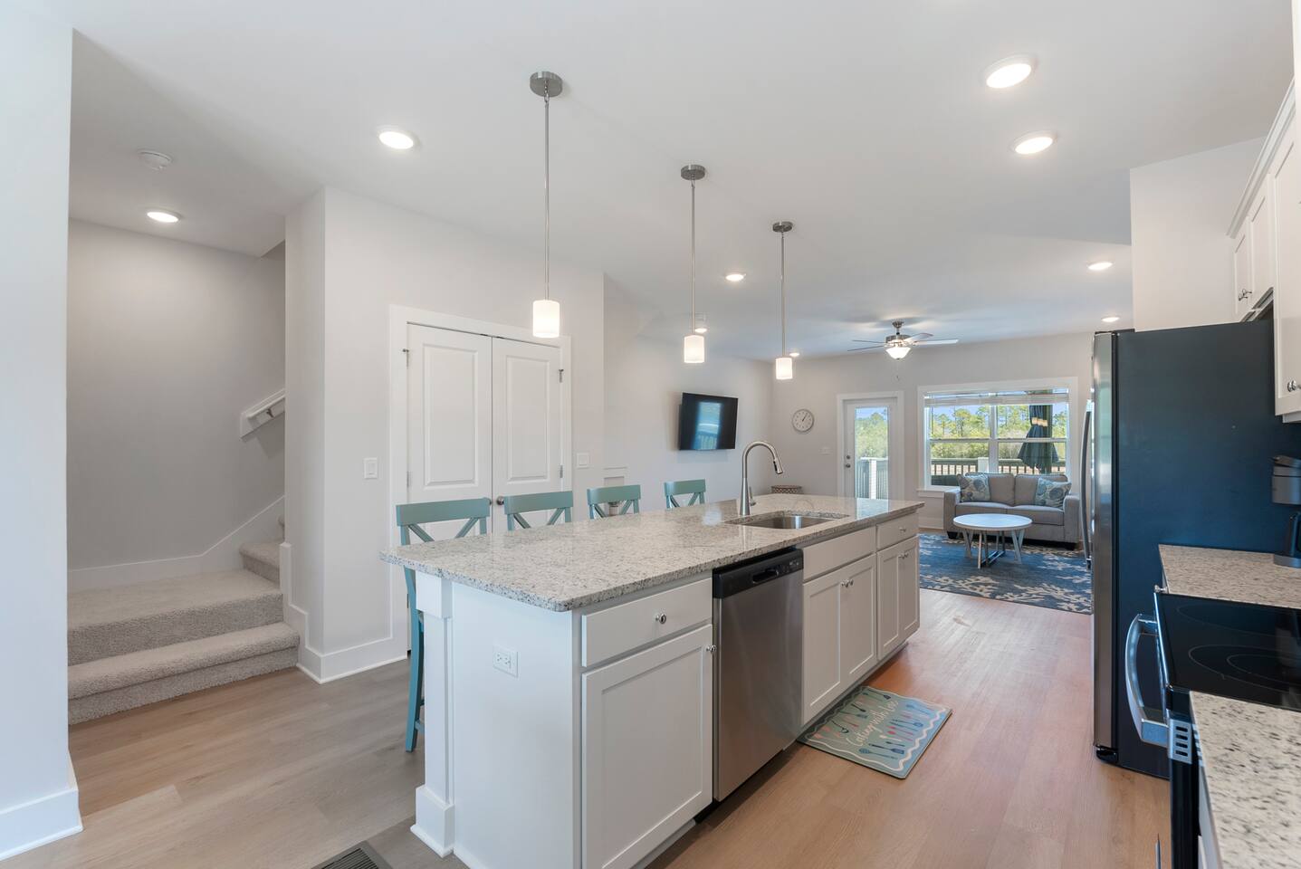 The charming Panama City Beach house is designed to provide a comfortable getaway for all visitors seeking the perfect stay. Its modern setting and outstanding facilities will offer the levels of relaxation and convenience you are looking for in a vacation home. Each room has an abundance of amenities and beautiful furnishings, enriched by plenty of natural light that accentuates the bright floors and tastefully chosen decor. Every inch of space is well-used, which is best visible in the entertaining and cozy open-concept living room, which successfully combines the living area with the lovely dining space and the fully equipped kitchen. Three highly comfortable bedrooms will provide all the relaxation you need after a thrilling day at the sandy beach. Youβll be able to catch a breath of fresh air in the backyard. We recommend lounging on the front porch if youβd like to get a feel for the tranquil neighborhood. β LIVING ROOM β The living room is perfect for enjoying fun and memorable moments after an eventful day. Find your spot on the comfy sofa, grab some snacks and drinks, and enjoy watching TV with your family and friends. β Comfortable Sofas with Pillows β 65β Smart TV β Stylish Coffee Table β Reading Lamp β KITCHEN & DINING β Come to the fully equipped kitchen and use its many modern cooking appliances, spacious quartz countertops, and ample cabinetry to create tasty homemade meals worthy of the most praised restaurants. β Microwave β Stove β Oven β Toaster β Blender β Refrigerator/Freezer β Dishwasher β Two Coffee Makers β Sink - Hot & Cold Water β Glasses β Silverware β Pots & Pans Enjoy a refreshing drink in the backyard while the designated family chef works their magic in the kitchen. The smells will invite you to the dining table for a tasty, homemade meal. β Dining Table with Seating for 6 β Kitchen Island with Seating for 4 β Access to the Balcony β SLEEPING ARRANGEMENTS - 3 BEDROOMS β You can retreat to these comfortable bedrooms, designed and furnished, to give you all the rest needed after a day of adventuring throughout Panama City Beach and the community. β Master Bedroom: Queen-Size Bed, Ensuite Bathroom β Bedroom 2: Queen-Size Bed β Bedroom 3: Bunk Bed (Twin over full and pull-out twin) β Premium Pillows, Linens, and Sheets β Smart TVs β Closets with Hangers and Shelves β Nightstands with Reading Lamps β BATHROOMS β In addition to the ensuite bathroom of the master bedroom, the home offers another full, relaxing bathroom stocked with essential toiletries and fresh towels for maximum comfort and convenience. β Walk-In Shower β Vanity (Double in the Master Bath) β Mirror β Toilet β Towels β Hair Dryer β Essential Toiletries β OUTDOOR AREAS β Patio on the first floor and a balcony on the second floor. You can look no further than our charming home for your memorable visit to Panama City Beach, FL. We look forward to you experiencing its complete comfort and coziness.