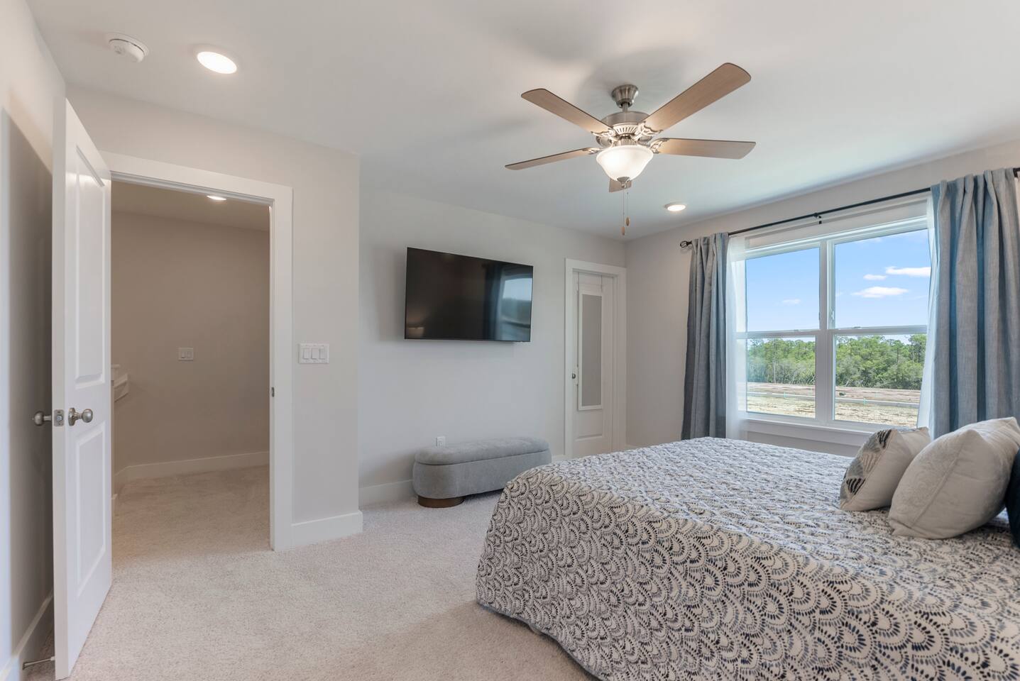 Spacious 3BR/3.5BA home just minutes from Panama City Beach! Each bedroom has a private bath, plus a guest half bath. Enjoy an open layout, a fully stocked kitchen, fast Wi-Fi, smart TVs, and a private outdoor space. Perfect for families, groups, or snowbirds. Located near Pier Park, Publix Sports Park, and local attractions. Includes laundry room, fresh linens, driveway parking, and everything you need for a relaxing and convenient stay on the Emerald Coast.