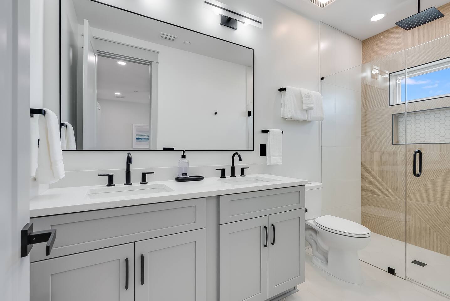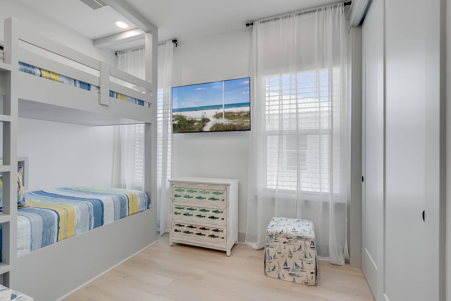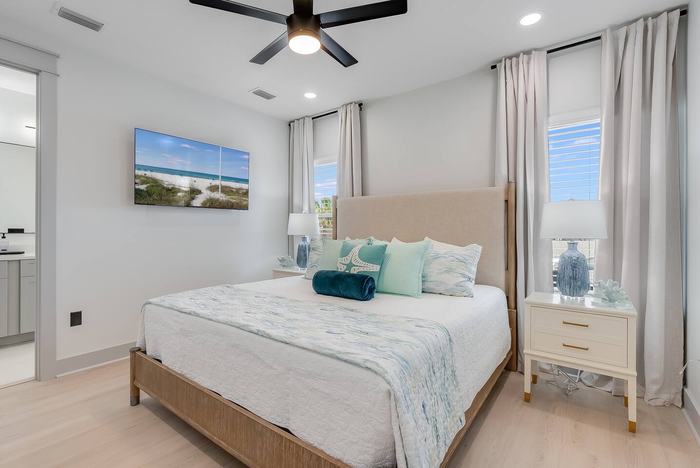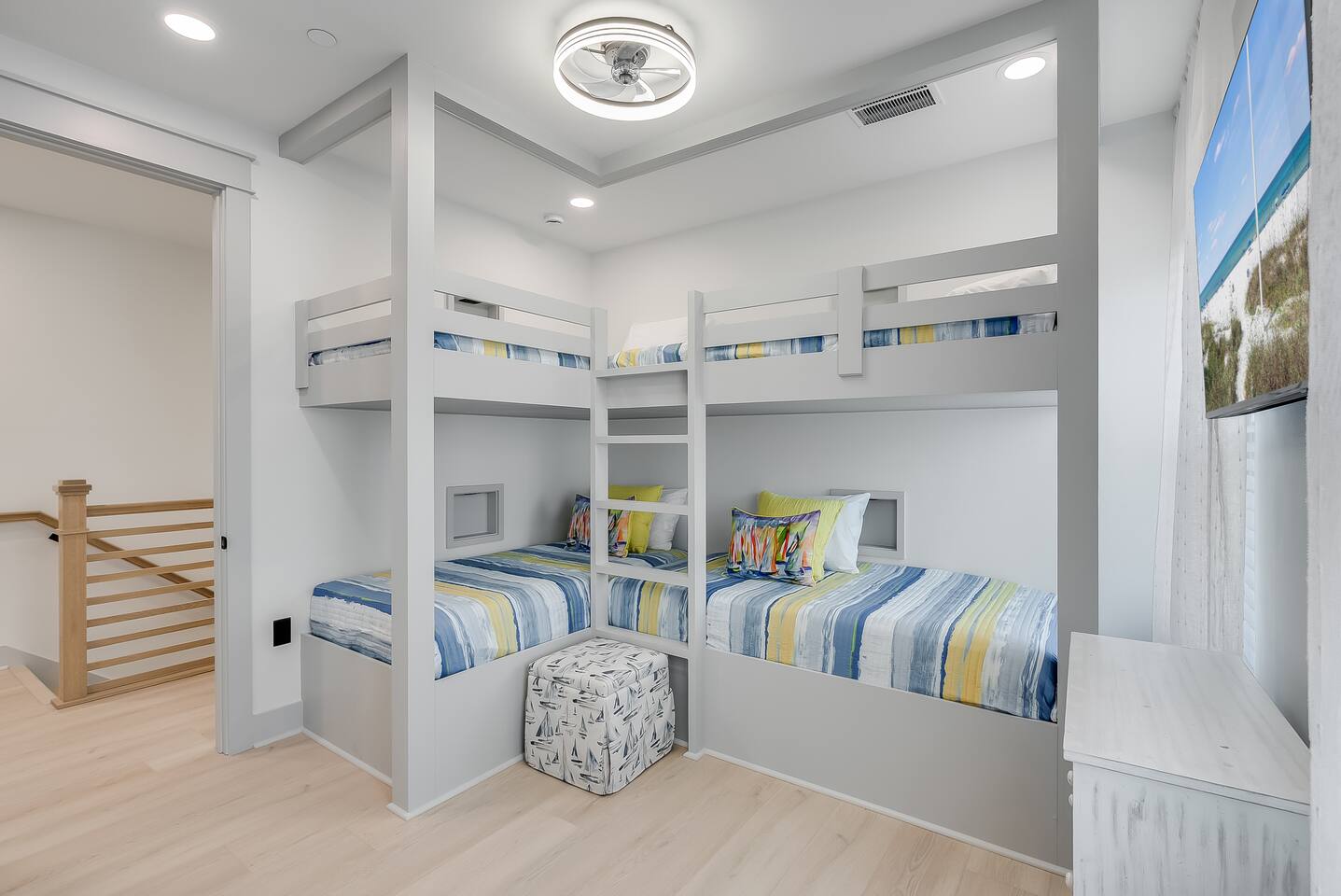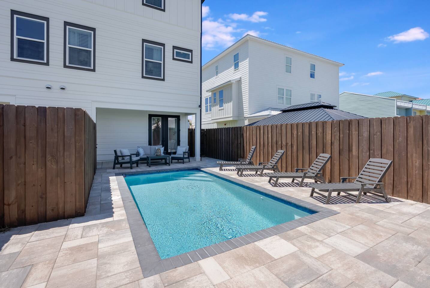 This home is one side of a private duplex. Guests have their own separate entrance, private patio/pool, and full access to the unit. The other side of the duplex is separately occupied, but there are no shared indoor spaces. Located in the quiet East End of Panama City Beach—just across from the famous Schooners restaurant—this spacious home is designed for families and groups seeking both comfort and convenience. Spacious & Comfortable 5 Bedrooms, 4.5 Bathrooms Sleeps up to 12 guests Bedding: 2 King beds, 2 Queen beds, 2 Twin-over-Twin bunk beds Modern Living Room Open-concept main level filled with natural light Elegant living room and fully stocked chef’s kitchen Stainless steel appliances, breakfast bar, and dining space for the whole group Balcony and patio perfect for coffee, cocktails, or quiet relaxation Private Amenities Your own heated pool for year-round enjoyment Fast Wi-Fi and smart TVs Fresh linens and washer/dryer Beach essentials included Perfect Location Steps from sugar-white sands Walk to Schooners for fresh seafood and live music Minutes to St. Andrews State Park, nightlife, and family attractions