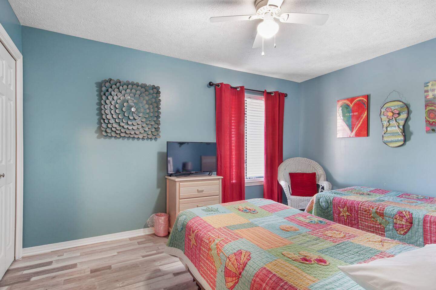 This lovely two-story Panama City Beach gem is designed with ultimate relaxation and resort-like comforts in mind. Invite everyone to the open-concept living area boasting a modern look and have hours of fun by watching movies, playing games, or cooking in the kitchen. Serve those tasty homemade delicacies on the dining table, creating a pleasant setting youβll enjoy in the great company of your family and friends. Open the patio doors to reveal the outdoor area, revel in complete tranquility, and feel the pulse of the wonderful resort. Have a refreshing drink and catch a breath of fresh air before heading to the beach or the nearby swimming pools. Once the sun goes down in Florida, retreat to the upper floor, which features two inviting bedrooms with comfortable beds to help you recharge after a long day of Panama City adventures. β LIVING AREA β The bright living room is the heartbeat of the open-concept design area, offering a unique and upbeat setting to relax between exciting sightseeing and beach hopping. β Two Sofas with Pillows β Smart TV β Stylish Coffee Table β Reading Lamp β Access to the Patio β KITCHEN & DINING β Open the cabinetry to find everything you need to treat your family to their favorite meals. Sort those fresh ingredients on the countertops and use the modern cooking appliances to unleash your cooking creativity! β Microwave β Stove β Oven β Toaster β Blender β Coffee Maker (Keurig Machine, Drip Coffee Maker) β Refrigerator/Freezer β Dishwasher β Sink - Hot & Cold Water β Glasses β Silverware β Pots & Pans The dining table is ideally nestled by the kitchen, allowing you to set the table and enjoy tasty family meals easily. The kitchen features a lovely bar where you can serve breakfasts, snacks, and smaller meals. β Dining Table with Seating for 6 β Kitchen Bar with Seating for 3 β SLEEPING ARRANGEMENTS - 3 BEDROOMS β Explore Panama City Beach, visit the attractions, soak up the sun on the beach, and then retreat to two comfortable bedrooms to rest so you can do it all again tomorrow. β Bedroom 1: King-Size Bed β Bedroom 2: Two Queen-Size Beds β Bedroom 3: Two Twin Size Beds All bedrooms come with a similar set of amenities: β Premium Pillows, Linens, and Sheets β Smart TVs β Closets with Hangers and Shelves β Dressers with Spacious Drawers β Nightstands with Reading Lamps β BATHROOMS β To ensure a perfect, carefree stay, we have prepared essential toiletries and fresh towels in the inviting full bathrooms on both floors. β Vanity β Mirror β Toilet β Towels β Hair Dryer β Essential Toiletries β OUTDOORS β Marvel at the serene surroundings from the two patios offering many relaxing spaces and amenities. β Front and Back Patio with Comfy Seating Look no further than our charming resort home for an unforgettable visit to Panama City Beach, FL. We are happy to answer any questions you might have.