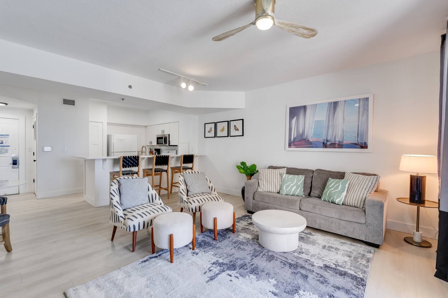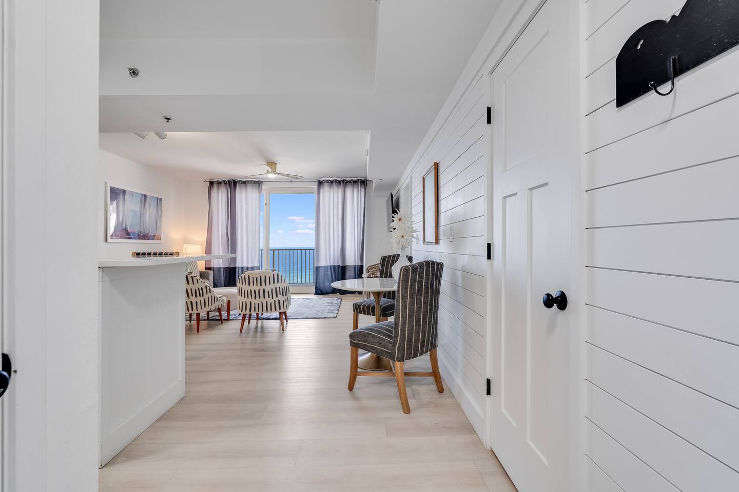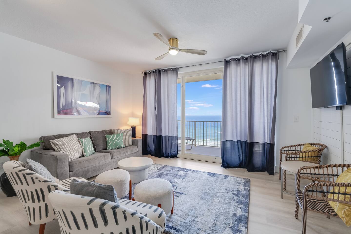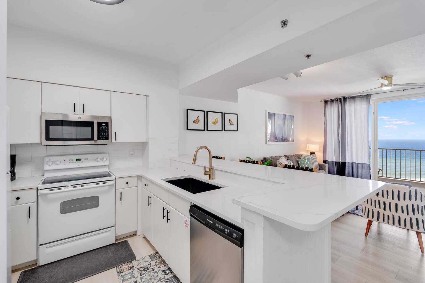 Experience the ultimate in coastal luxury with this newly remodeled, modern beachfront condo in The Shores of Panama building. Featuring stunning ocean views, a sleek, contemporary design, and high-end finishes throughout, this gorgeous retreat combines comfort and style seamlessly. The open-concept living space is adorned with floor-to-ceiling windows, filling the interior with abundant natural light and offering panoramic ocean views.