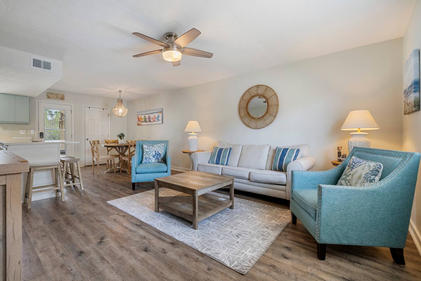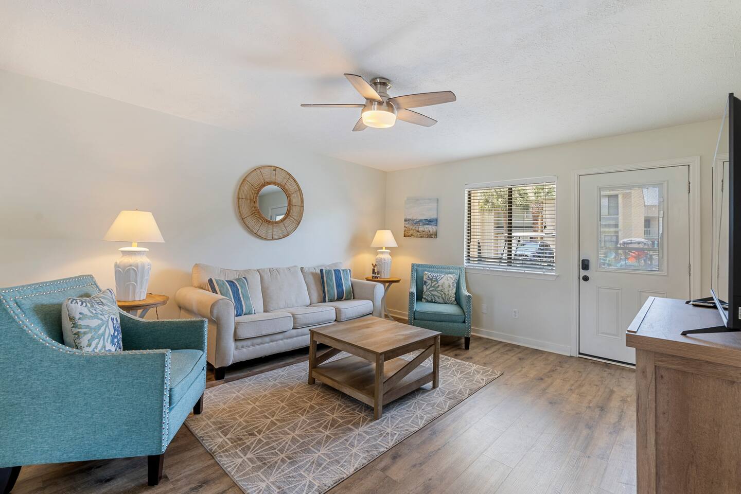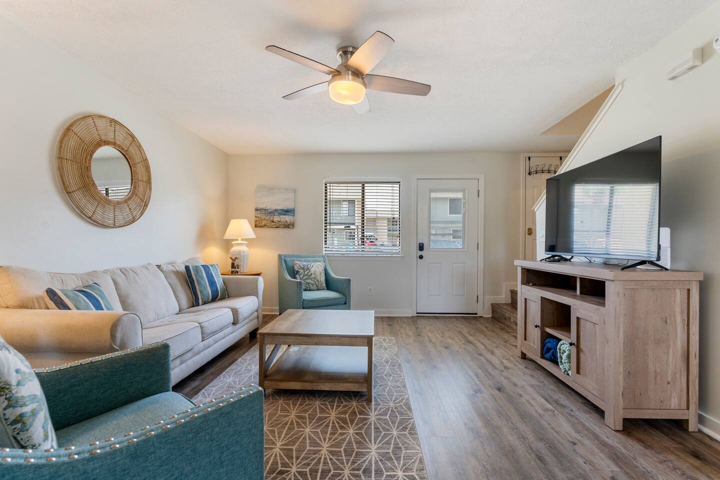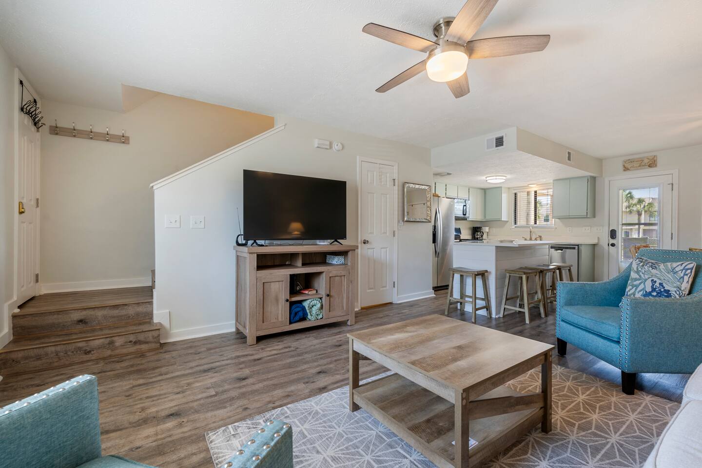 ✔ Learn more below!!! This lovely two-story Panama City Beach gem is designed with ultimate relaxation and resort-like comforts in mind. Invite everyone to the open-concept living area boasting a stylish look and have hours of fun by watching movies, playing games, or cooking in the kitchen. Serve those tasty homemade delicacies on the dining table, creating a pleasant setting you’ll enjoy in the great company of your family and friends. Open the patio doors to reveal the private outdoor area, revel in complete tranquility, and feel the pulse of the wonderful resort. Have a refreshing drink and catch a breath of fresh air before heading to the beach or the nearby swimming pools. Once the sun goes down in Florida, retreat to the upper floor, which features two inviting bedrooms with comfortable beds to help you recharge after a long day of Panama City adventures. ★ LIVING AREA ★ The bright living room is the heartbeat of the open-concept design area, offering a unique and upbeat setting to relax between exciting sightseeing and beach hopping. ✔ Two Sofas with Pillows ✔ Smart TV ✔ Stylish Coffee Table ✔ Reading Lamp ✔ Access to the Patio ★ KITCHEN & DINING ★ Open the cabinetry to find everything you need to treat your family to their favorite meals. Sort those fresh ingredients on the countertops and use the modern cooking appliances to unleash your cooking creativity! ✔ Microwave ✔ Stove ✔ Oven ✔ Toaster ✔ Blender ✔ Coffee Maker (Keurig Machine, Drip Coffee Maker) ✔ Refrigerator/Freezer ✔ Dishwasher ✔ Sink - Hot & Cold Water ✔ Trays ✔ Glasses ✔ Silverware ✔ Pots & Pans The dining table is ideally nestled by the kitchen, allowing you to set the table and enjoy tasty family meals easily. The kitchen features a lovely bar where you can serve breakfasts, snacks, and smaller meals. ✔ Dining Table with Seating for 4 ✔ Kitchen Bar with Seating for 2 ★ SLEEPING ARRANGEMENTS - 2 BEDROOMS ★ Explore Panama City Beach, visit the attractions, soak up the sun on the beach, and then retreat to two comfortable bedrooms to rest so you can do it all again tomorrow. ♛ Bedroom 1: King-Size Bed ♛ Bedroom 2: Queen-Size Bed, Twin Size Bed Both bedrooms come with a similar set of amenities: ✔ Premium Pillows, Linens, and Sheets ✔ Smart TVs ✔ Closets with Hangers and Shelves ✔ Nightstands with Reading Lamps ★ BATHROOMS ★ To ensure a perfect, carefree stay, we have prepared essential toiletries and fresh towels in the inviting full bathrooms on the upper floor and the convenient half bath accessible from the living area. ✔ Walk-In Shower ✔ Vanity ✔ Mirror ✔ Toilet ✔ Towels ✔ Hair Dryer ✔ Essential Toiletries ★ OUTDOORS ★ Marvel at the serene surroundings from the patio offering many relaxing spaces and amenities. ✔ Back Patio with Lounge Seating Look no further than our charming resort home for an unforgettable visit to Panama City Beach, FL. We are happy to answer any questions you might have.