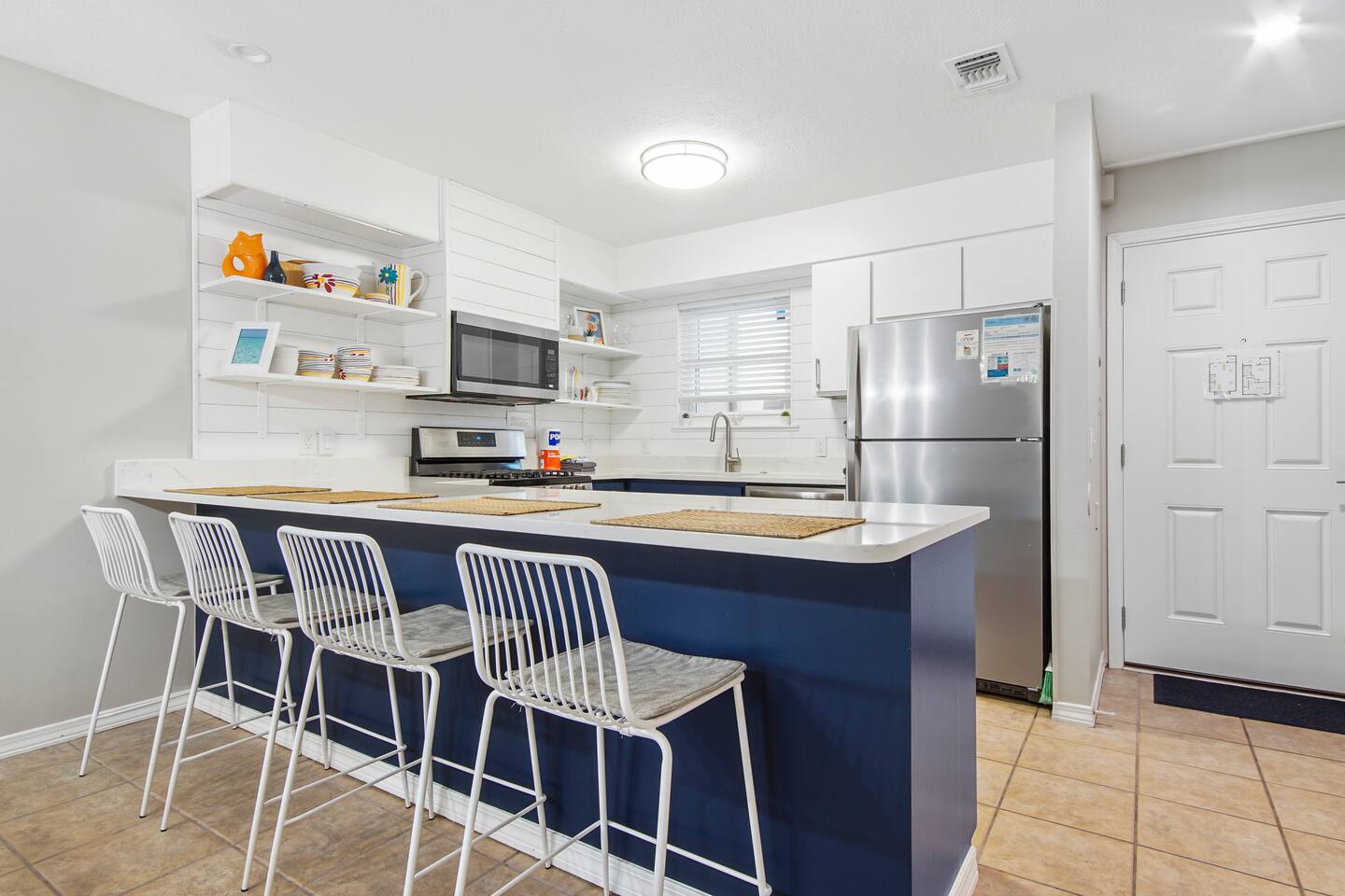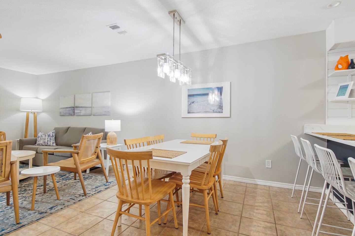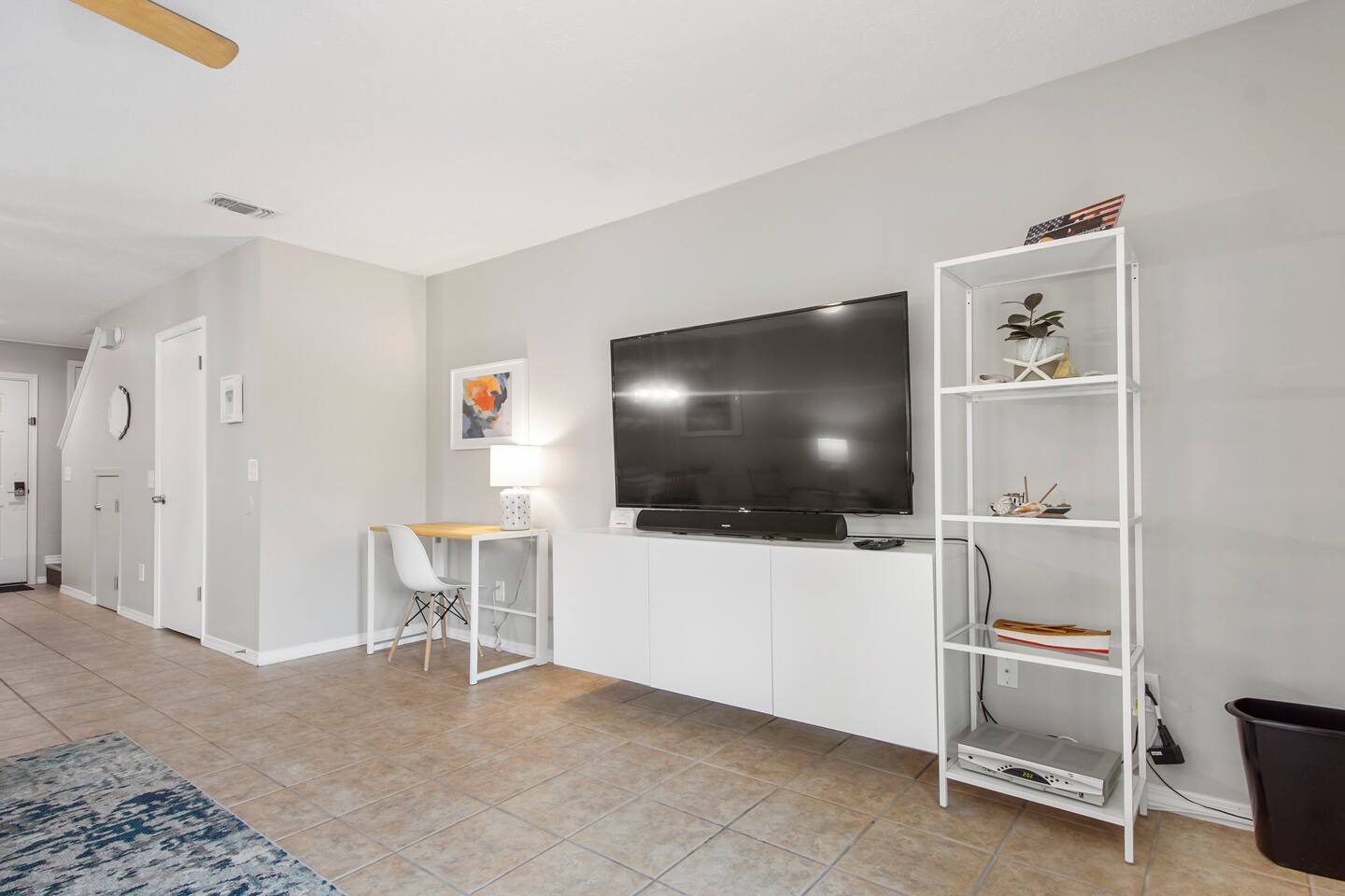 There are security cameras by the front door and back patio, for our and guests' safety. This lovely two-story Panama City Beach gem is designed with ultimate relaxation and resort-like comforts in mind. Invite everyone to the open-concept living area boasting a modern look and have hours of fun by watching movies, playing games, or cooking in the kitchen. Serve those tasty homemade delicacies on the dining table, creating a pleasant setting you’ll enjoy in the great company of your family and friends. Open the patio doors to reveal the private outdoor area, revel in complete tranquility, and feel the pulse of the wonderful resort. Have a refreshing drink and catch a breath of fresh air before heading to the beach or the nearby swimming pools. Once the sun goes down in Florida, retreat to the upper floor, which features two inviting bedrooms with comfortable beds to help you recharge after a long day of Panama City adventures. ★ LIVING AREA ★ The bright living room is the heartbeat of the open-concept design area, offering a unique and upbeat setting to relax between exciting sightseeing and beach hopping. ✔ Couch ✔ Smart TV ✔ Stylish Coffee Table ✔ Reading Lamp ✔ Access to the Patio ★ KITCHEN & DINING ★ Open the cabinetry to find everything you need to treat your family to their favorite meals. Sort those fresh ingredients on the countertops and use the modern cooking appliances to unleash your cooking creativity! ✔ Microwave ✔ Stove ✔ Oven ✔ Toaster ✔ Blender ✔ Coffee Maker (Keurig Machine, Drip Coffee Maker) ✔ Refrigerator/Freezer ✔ Dishwasher ✔ Sink - Hot & Cold Water ✔ Glasses ✔ Silverware ✔ Pots & Pans The dining table is ideally nestled by the kitchen, allowing you to set the table and enjoy tasty family meals easily. The kitchen features a lovely bar where you can serve breakfasts, snacks, and smaller meals. ✔ Dining Table with Seating for 6 ✔ Kitchen Bar with Seating for 3 ★ SLEEPING ARRANGEMENTS - 2 BEDROOMS ★ Explore Panama City Beach, visit the attractions, soak up the sun on the beach, and then retreat to two comfortable bedrooms to rest so you can do it all again tomorrow. ♛ Bedroom 1: King-size bed, Twin over Twin bunk bed ♛ Bedroom 2: King-Size Bed Both bedrooms come with a similar set of amenities: ✔ Premium Pillows, Linens, and Sheets ✔ Smart TVs ✔ Closets with Hangers and Shelves ✔ Dressers with Spacious Drawers ✔ Nightstands with Reading Lamps ★ BATHROOMS ★ To ensure a perfect, carefree stay, we have prepared essential toiletries and fresh towels in the inviting full bathrooms on the upper floor and the convenient half bath accessible from the living area. ✔ Vanity ✔ Mirror ✔ Toilet ✔ Towels ✔ Hair Dryer ✔ Essential Toiletries ★ OUTDOORS ★ Marvel at the serene surroundings from the two patios offering many relaxing spaces and amenities. ✔ Back Patio with Lounge Seating Look no further than our charming resort home for an unforgettable visit to Panama City Beach, FL. We are happy to answer any questions you might have.