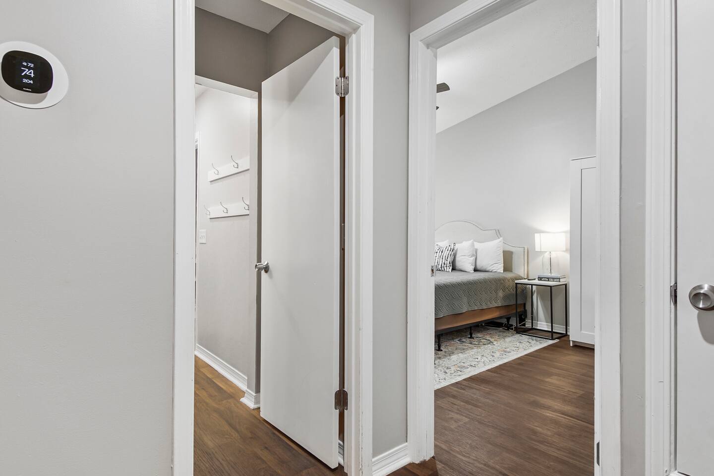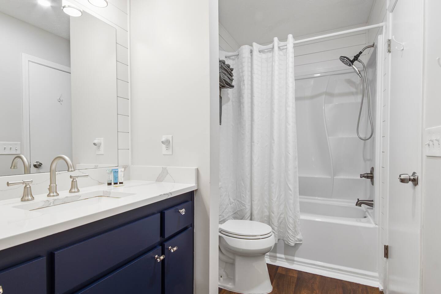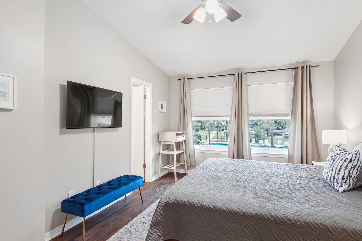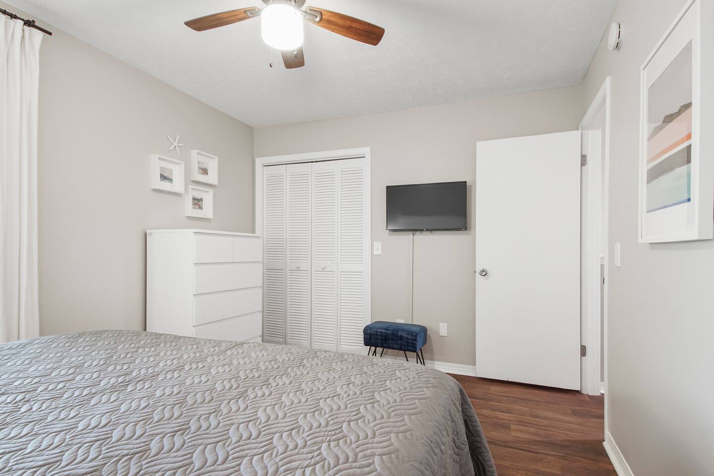 There are security cameras by the front door and back patio, for our and guests' safety. This lovely two-story Panama City Beach gem is designed with ultimate relaxation and resort-like comforts in mind. Invite everyone to the open-concept living area boasting a modern look and have hours of fun by watching movies, playing games, or cooking in the kitchen. Serve those tasty homemade delicacies on the dining table, creating a pleasant setting you’ll enjoy in the great company of your family and friends. Open the patio doors to reveal the private outdoor area, revel in complete tranquility, and feel the pulse of the wonderful resort. Have a refreshing drink and catch a breath of fresh air before heading to the beach or the nearby swimming pools. Once the sun goes down in Florida, retreat to the upper floor, which features two inviting bedrooms with comfortable beds to help you recharge after a long day of Panama City adventures. ★ LIVING AREA ★ The bright living room is the heartbeat of the open-concept design area, offering a unique and upbeat setting to relax between exciting sightseeing and beach hopping. ✔ Couch ✔ Smart TV ✔ Stylish Coffee Table ✔ Reading Lamp ✔ Access to the Patio ★ KITCHEN & DINING ★ Open the cabinetry to find everything you need to treat your family to their favorite meals. Sort those fresh ingredients on the countertops and use the modern cooking appliances to unleash your cooking creativity! ✔ Microwave ✔ Stove ✔ Oven ✔ Toaster ✔ Blender ✔ Coffee Maker (Keurig Machine, Drip Coffee Maker) ✔ Refrigerator/Freezer ✔ Dishwasher ✔ Sink - Hot & Cold Water ✔ Glasses ✔ Silverware ✔ Pots & Pans The dining table is ideally nestled by the kitchen, allowing you to set the table and enjoy tasty family meals easily. The kitchen features a lovely bar where you can serve breakfasts, snacks, and smaller meals. ✔ Dining Table with Seating for 6 ✔ Kitchen Bar with Seating for 3 ★ SLEEPING ARRANGEMENTS - 2 BEDROOMS ★ Explore Panama City Beach, visit the attractions, soak up the sun on the beach, and then retreat to two comfortable bedrooms to rest so you can do it all again tomorrow. ♛ Bedroom 1: King-size bed, Twin over Twin bunk bed ♛ Bedroom 2: King-Size Bed Both bedrooms come with a similar set of amenities: ✔ Premium Pillows, Linens, and Sheets ✔ Smart TVs ✔ Closets with Hangers and Shelves ✔ Dressers with Spacious Drawers ✔ Nightstands with Reading Lamps ★ BATHROOMS ★ To ensure a perfect, carefree stay, we have prepared essential toiletries and fresh towels in the inviting full bathrooms on the upper floor and the convenient half bath accessible from the living area. ✔ Vanity ✔ Mirror ✔ Toilet ✔ Towels ✔ Hair Dryer ✔ Essential Toiletries ★ OUTDOORS ★ Marvel at the serene surroundings from the two patios offering many relaxing spaces and amenities. ✔ Back Patio with Lounge Seating Look no further than our charming resort home for an unforgettable visit to Panama City Beach, FL. We are happy to answer any questions you might have.