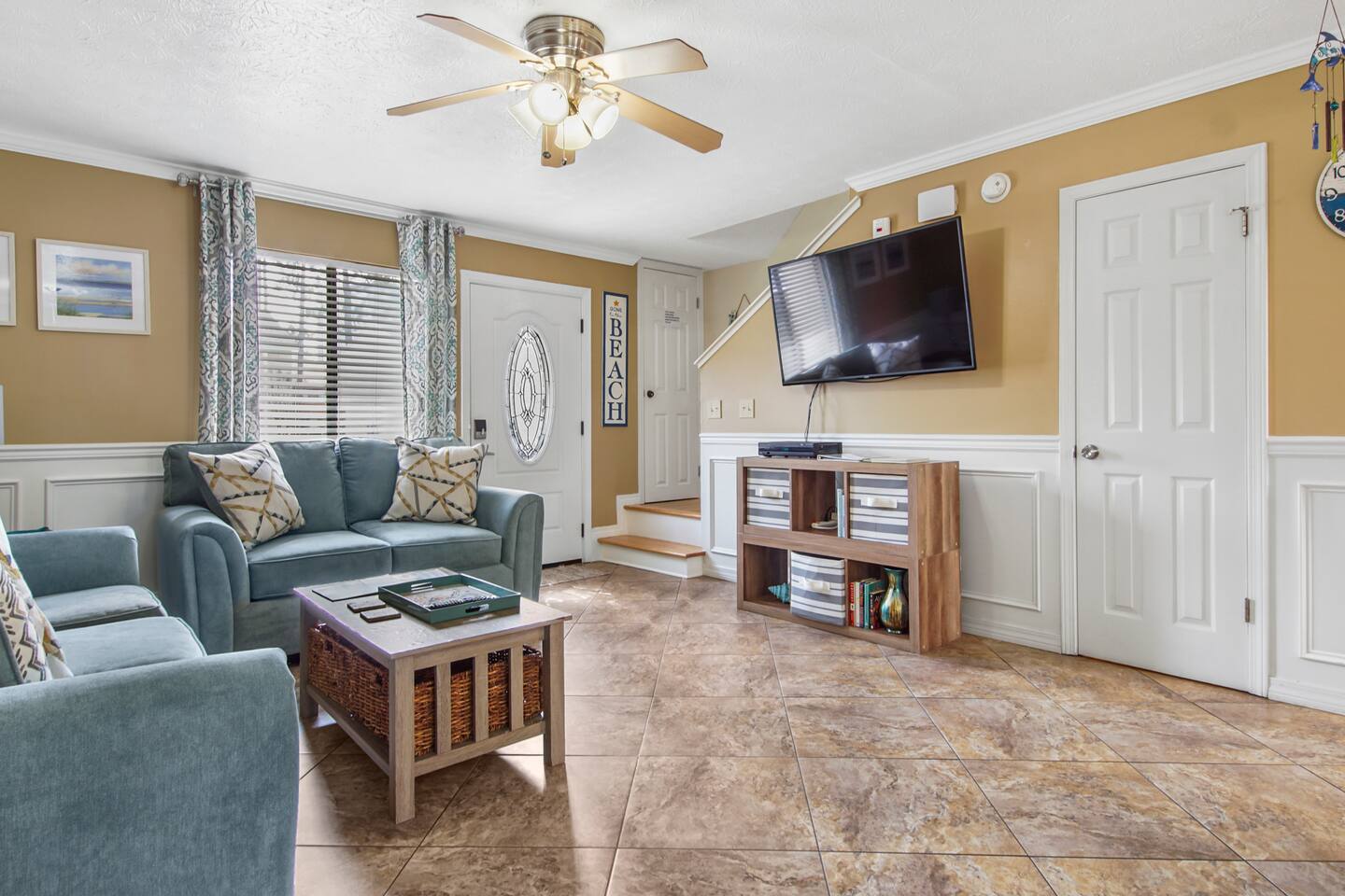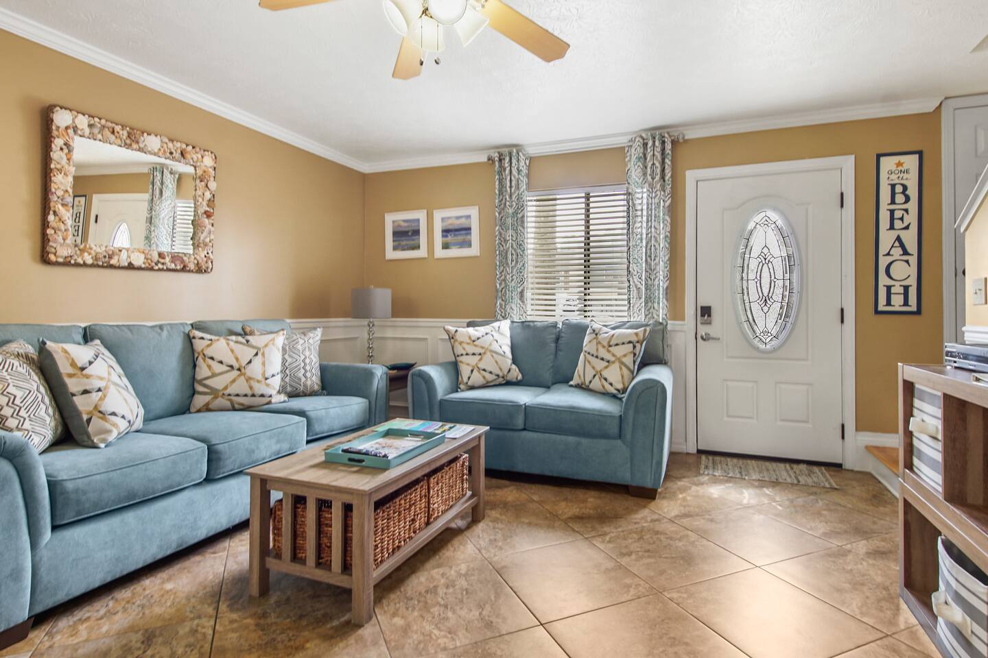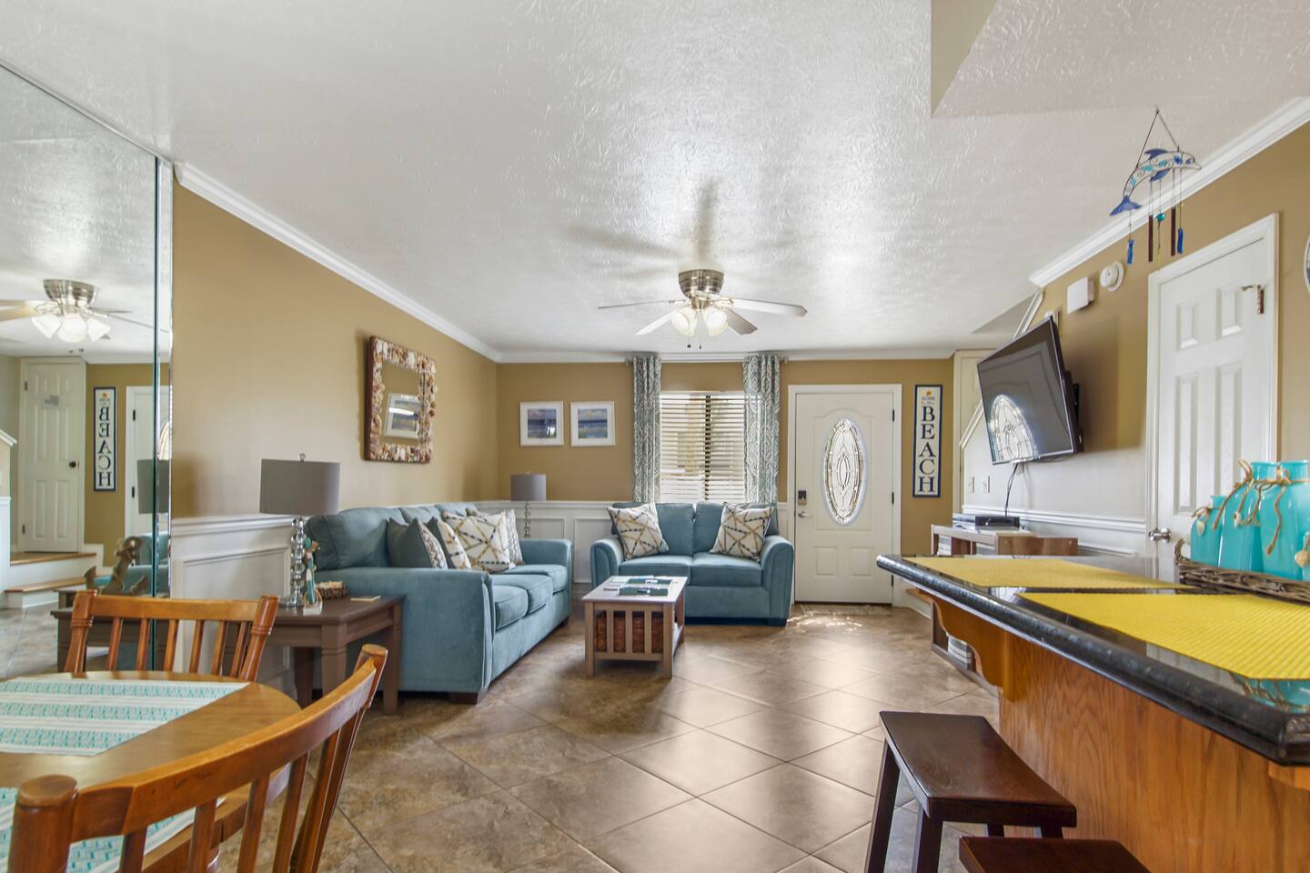 ✔ Learn more below!!! This lovely two-story Panama City Beach gem is designed with ultimate relaxation and resort-like comforts in mind. Invite everyone to the open-concept living area boasting a stylish look and have hours of fun by watching movies, playing games, or cooking in the kitchen. Serve those tasty homemade delicacies on the dining table, creating a pleasant setting you’ll enjoy in the great company of your family and friends. Open the patio doors to reveal the private outdoor area, revel in complete tranquility, and feel the pulse of the wonderful resort. Have a refreshing drink and catch a breath of fresh air before heading to the beach or the nearby swimming pools. Once the sun goes down in Florida, retreat to the upper floor, which features two inviting bedrooms with comfortable beds to help you recharge after a long day of Panama City adventures. ★ LIVING AREA ★ The bright living room is the heartbeat of the open-concept design area, offering a unique and upbeat setting to relax between exciting sightseeing and beach hopping. ✔ Two Sofas with Pillows ✔ Smart TV ✔ Stylish Coffee Table ✔ Reading Lamp ✔ Access to the Patio ★ KITCHEN & DINING ★ Open the cabinetry to find everything you need to treat your family to their favorite meals. Sort those fresh ingredients on the countertops and use the modern cooking appliances to unleash your cooking creativity! ✔ Microwave ✔ Stove ✔ Oven ✔ Toaster ✔ Blender ✔ Coffee Maker (Keurig Machine, Drip Coffee Maker) ✔ Refrigerator/Freezer ✔ Dishwasher ✔ Sink - Hot & Cold Water ✔ Trays ✔ Glasses ✔ Silverware ✔ Pots & Pans The dining table is ideally nestled by the kitchen, allowing you to set the table and enjoy tasty family meals easily. The kitchen features a lovely bar where you can serve breakfasts, snacks, and smaller meals. ✔ Dining Table with Seating for 4 ✔ Kitchen Bar with Seating for 2 ★ SLEEPING ARRANGEMENTS - 2 BEDROOMS ★ Explore Panama City Beach, visit the attractions, soak up the sun on the beach, and then retreat to two comfortable bedrooms to rest so you can do it all again tomorrow. ♛ Bedroom 1: King-Size Bed ♛ Bedroom 2: Two Queen-Size Beds Both bedrooms come with a similar set of amenities: ✔ Premium Pillows, Linens, and Sheets ✔ Smart TVs ✔ Closets with Hangers and Shelves ✔ Dressers with Spacious Drawers ✔ Nightstands with Reading Lamps ★ BATHROOMS ★ To ensure a perfect, carefree stay, we have prepared essential toiletries and fresh towels in the inviting full bathrooms on the upper floor, as well as the convenient half bath accessible from the living area. ✔ Walk-In Shower ✔ Vanity ✔ Mirror ✔ Toilet ✔ Towels ✔ Hair Dryer ✔ Essential Toiletries ★ OUTDOORS ★ Marvel at the serene surroundings from the two patios offering many relaxing spaces and amenities. ✔ Front Patio with Comfy Seating ✔ Back Patio with Lounge Seating Look no further than our charming resort home for an unforgettable visit to Panama City Beach, FL. We are happy to answer any questions you might have.
