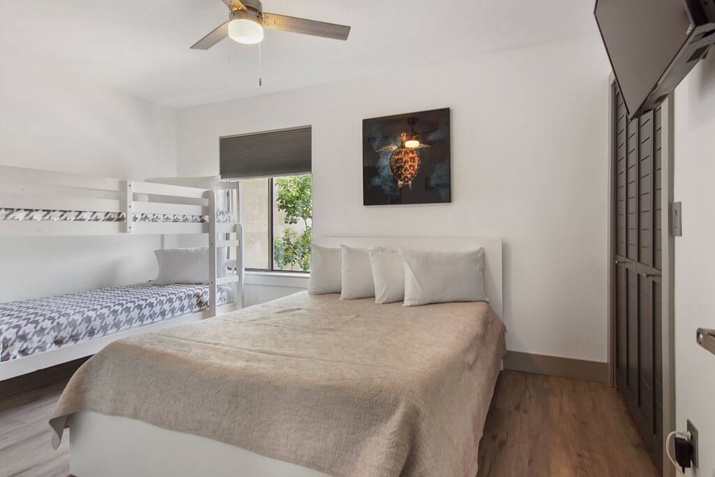 Learn more below! ✔ 2 Comfortable Bedrooms (4 Beds) ✔ Open Design Living ✔ Fully Equipped Kitchen ✔ Front & Back Patios ✔ Smart TVs ✔ High-Speed Wi-Fi ✔ Resort Amenities (Pools, Sports, Gym, Parking...) ✔ Free Putt Putt ✔ Pickle Ball Court This lovely two-story Panama City Beach gem is designed with ultimate relaxation and resort-like comforts in mind. Invite everyone to the open-concept living area boasting a modern look and have hours of fun by watching movies, playing games, or cooking in the kitchen. Serve those tasty homemade delicacies on the dining table, creating a pleasant setting you’ll enjoy in the great company of your family and friends. Open the patio doors to reveal the outdoor area overlooking the heated (in the winter) pool, revel in complete tranquility, and feel the pulse of the wonderful resort. Have a refreshing drink and catch a breath of fresh air before heading to the beach or the nearby swimming pools. Once the sun goes down in Florida, retreat to the upper floor, which features two inviting bedrooms with comfortable beds to help you recharge after a long day of Panama City adventures. ★ LIVING AREA ★ The bright living room is the heartbeat of the open-concept design area, offering a unique and upbeat setting to relax between exciting sightseeing and beach hopping. ✔ Oversized Sectional ✔ Smart TV ✔ Stylish Coffee Table ✔ Reading Lamp ✔ Access to the Patio ★ KITCHEN & DINING ★ Open the cabinetry to find everything you need to treat your family to their favorite meals. Sort those fresh ingredients on the countertops and use the modern cooking appliances to unleash your cooking creativity! ✔ Microwave ✔ Stove ✔ Oven ✔ Toaster ✔ Blender ✔ Coffee Maker (Keurig Machine, Drip Coffee Maker) ✔ Refrigerator/Freezer ✔ Dishwasher ✔ Sink - Hot & Cold Water ✔ Trays ✔ Glasses ✔ Silverware ✔ Pots & Pans The dining table is ideally nestled by the kitchen, allowing you to set the table and enjoy tasty family meals easily. The kitchen features a lovely bar where you can serve breakfasts, snacks, and smaller meals. ✔ Dining Table with Seating for 6 ✔ Kitchen Bar with Seating for 4 ★ SLEEPING ARRANGEMENTS - 2 BEDROOMS ★ Explore Panama City Beach, visit the attractions, soak up the sun on the beach, and then retreat to two comfortable bedrooms to rest so you can do it all again tomorrow. ♛ Bedroom 1: King-Size Bed ♛ Bedroom 2: Queen-Size Bed and twin over twin bunk bed Both bedrooms come with a similar set of amenities: ✔ Premium Pillows, Linens, and Sheets ✔ Smart TVs ✔ Closets with Hangers and Shelves ✔ Dressers with Spacious Drawers ✔ Nightstands with Reading Lamps ★ BATHROOMS ★ To ensure a perfect, carefree stay, we have prepared essential toiletries and fresh towels in the inviting full bathrooms on the upper floor and the convenient half bath accessible from the living area. ✔ Walk-In Shower ✔ Vanity ✔ Mirror ✔ Toilet ✔ Towels ✔ Hair Dryer ✔ Essential Toiletries ★ OUTDOORS ★ Marvel at the serene surroundings from the patio, offering many relaxing spaces and amenities. Look no further than our charming resort home for an unforgettable visit to Panama City Beach, FL. We are happy to answer any questions you might have.